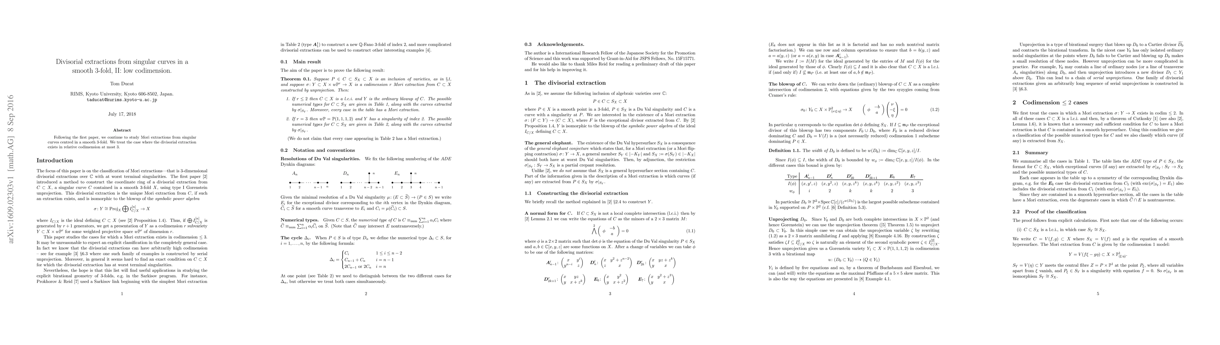 Following the first paper, we continue to study Mori extractions from singular curves centred in a smooth 3-fold. We treat the case where the divisorial extraction exists in relative codimension at most 3.