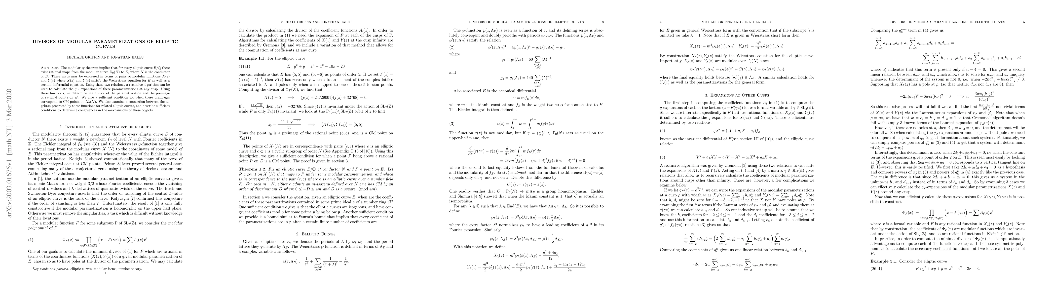 This paper explores rational maps from modular curves to elliptic curves, utilizing modular functions to parametrize these curves. It determines the divisor of these parametrizations and conditions for preimages corresponding to CM points, while also investigating congruences in their $q$-expansions.
