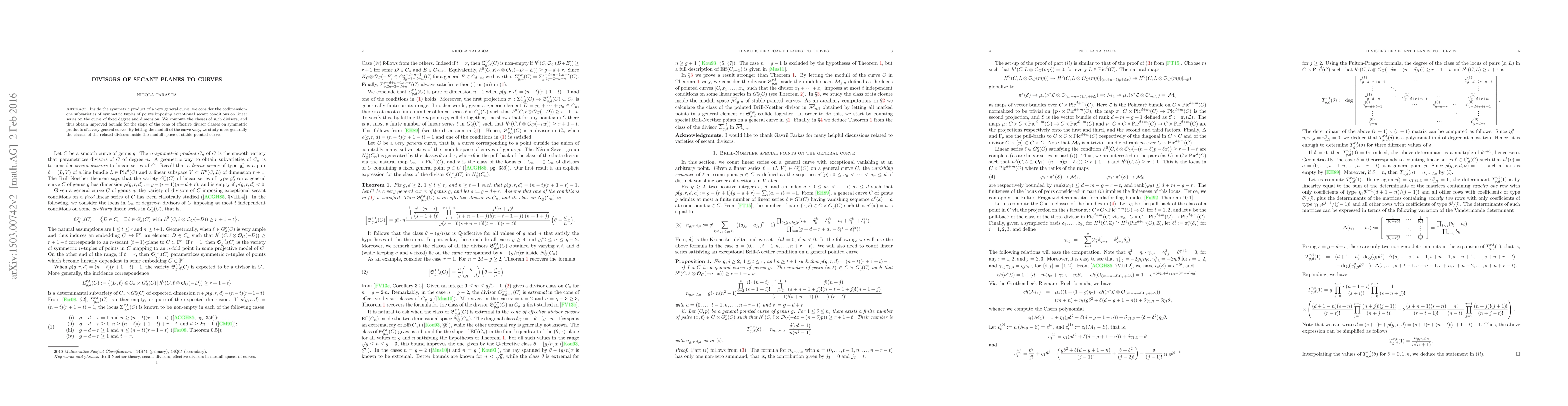 Inside the symmetric product of a very general curve, we consider the codimension-one subvarieties of symmetric tuples of points imposing exceptional secant conditions on linear series on the curve of fixed degree and dimension. We compute the classes of such divisors, and thus obtain improved bounds for the slope of the cone of effective divisor classes on symmetric products of a very general curve. By letting the moduli of the curve vary, we study more generally the classes of the related divisors inside the moduli space of stable pointed curves.