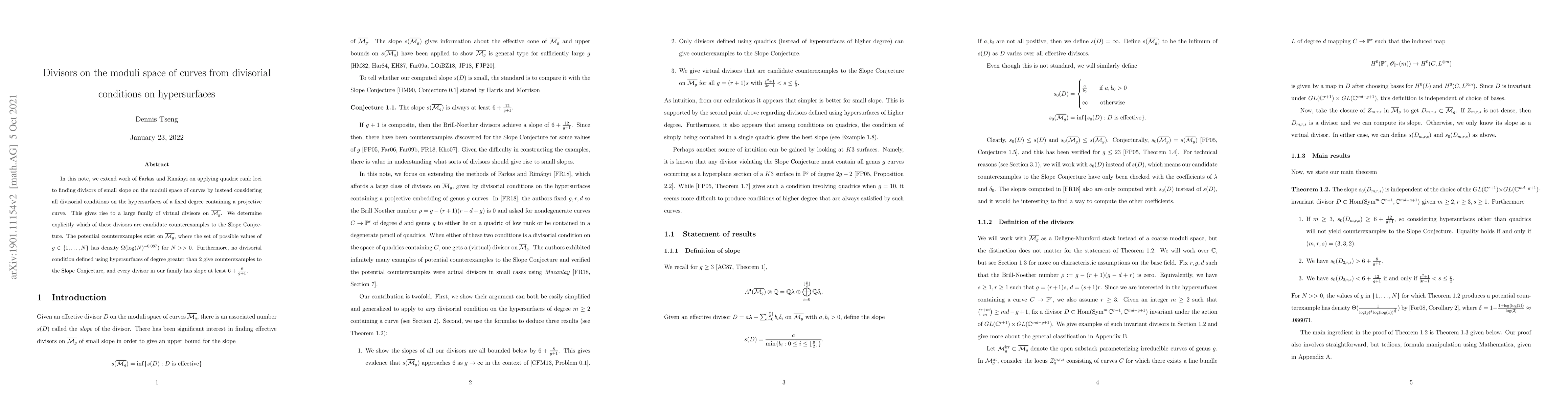 Researchers have found a large family of virtual divisors on the moduli space of curves that could serve as counterexamples to the Slope Conjecture, specifically for small values of g, and established a lower bound for their slopes.