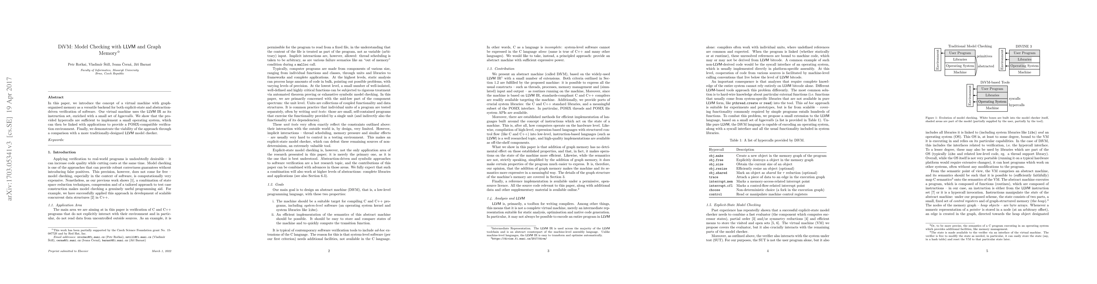 The paper introduces DiVM, a virtual machine with graph-organized memory for explicit-state and abstraction-driven verification of software using LLVM IR as its instruction set, enhanced with a set of hypercalls.