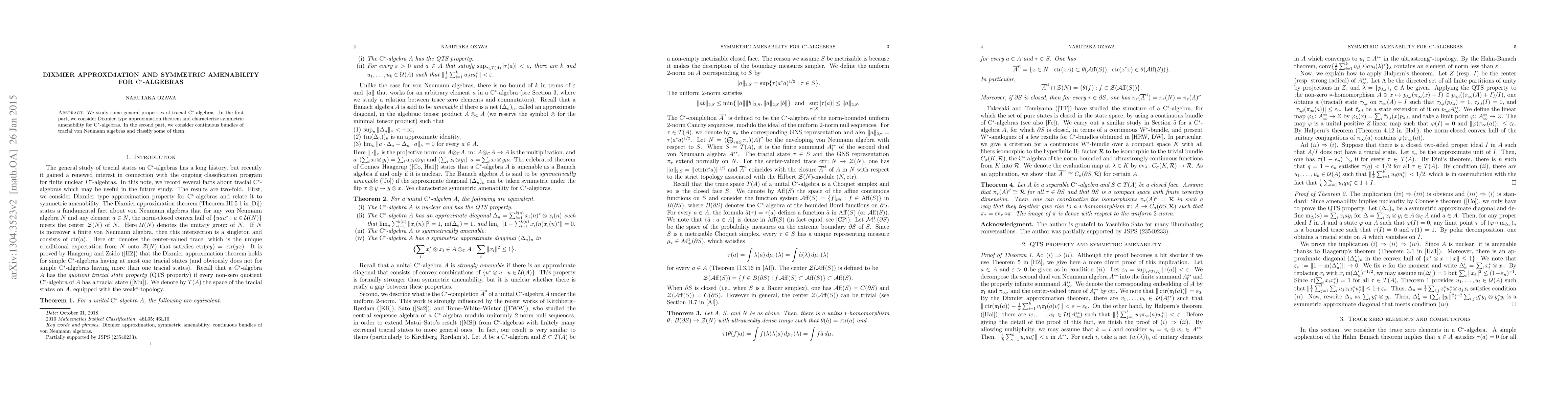 Summary: This paper explores properties of tracial C*-algebras, focusing on the Dixmier approximation theorem and symmetric amenability characterization. It also classifies certain continuous bundles of tracial von Neumann algebras.