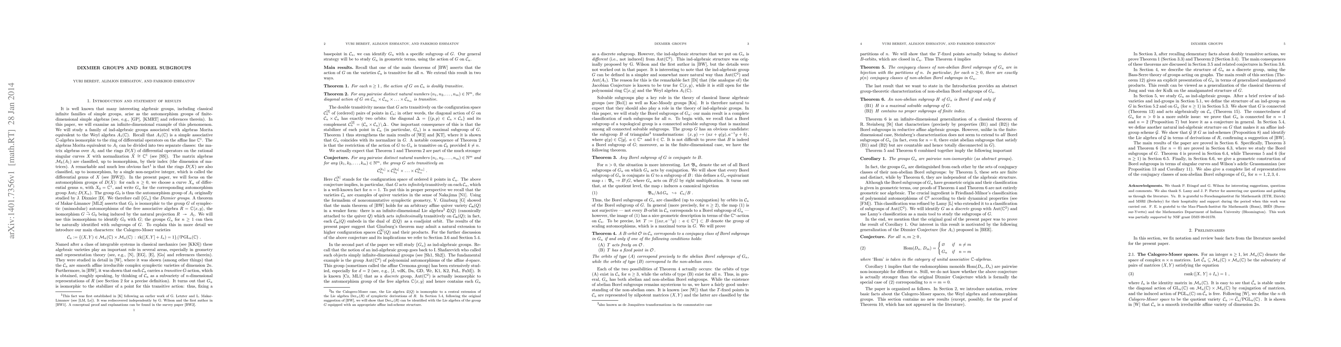 This paper generalizes the action of the Dixmier group G on Calogero-Moser spaces, proving its doubly transitive nature and transitivity on products of distinct spaces. It classifies Borel subgroups of G's isotropy subgroups G_n, showing a bijection between non-abelian Borel subgroups and partitions of n, and proves an infinite-dimensional analogue of Steinberg's theorem, establishing G_n's non-isomorphism.
