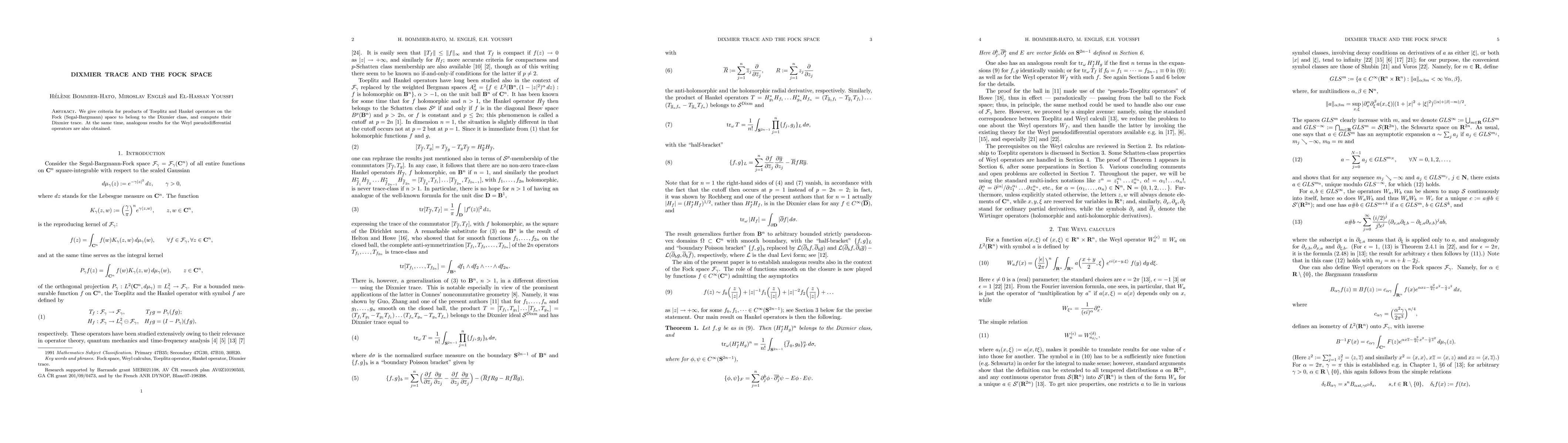 The paper presents criteria for Toeplitz and Hankel operators on the Fock space to belong to the Dixmier class and computes their Dixmier trace, extending existing knowledge in operator theory.