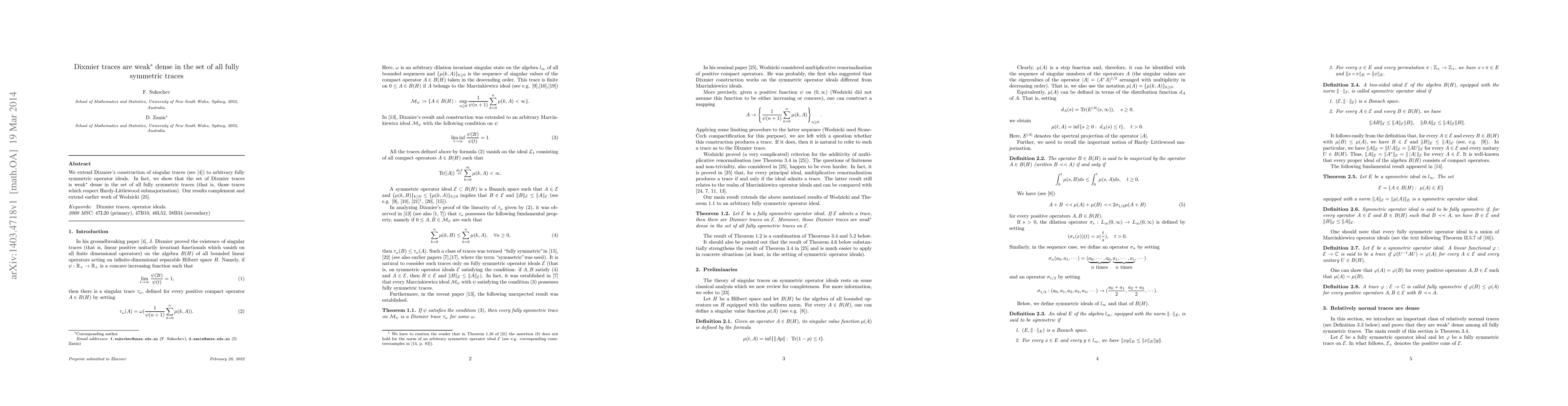 Summary: This paper extends Dixmier's construction of singular traces to fully symmetric operator ideals, demonstrating that Dixmier traces are weak$^*$ dense in the set of all fully symmetric traces. This extends previous work by Wodzicki.