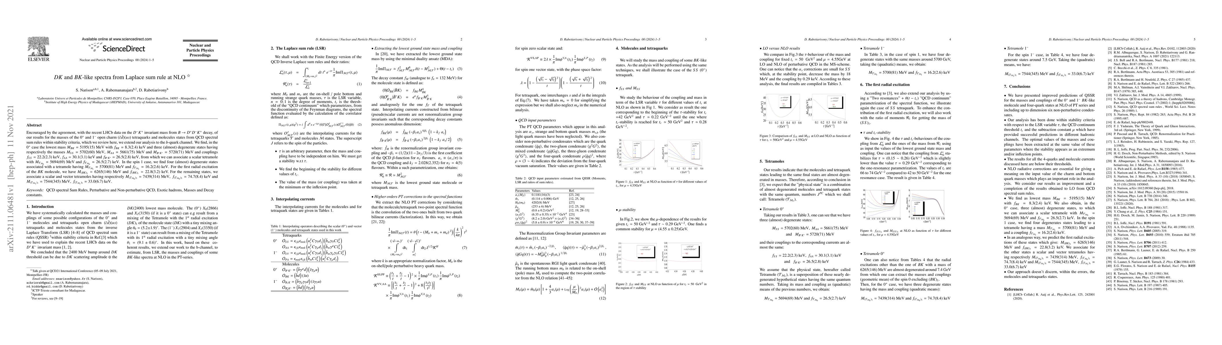 Researchers used Laplace sum rule to predict masses and couplings of $DK$ and $BK$-like spectra in $b$-quark channel, finding a scalar tetramole with masses ranging from 5694 MeV to 7544 MeV.