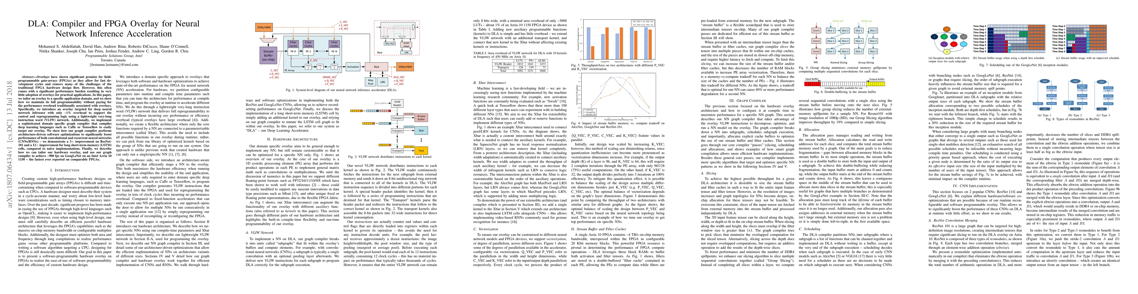 This paper presents an FPGA overlay and a domain-specific graph compiler for accelerating deep neural network inference with minimal performance overhead. The overlay, supported by a lightweight VLIW network, achieves a 3x improvement on ResNet-101 and a 12x improvement on LSTM cells, enabling ~900 fps on GoogLeNet.