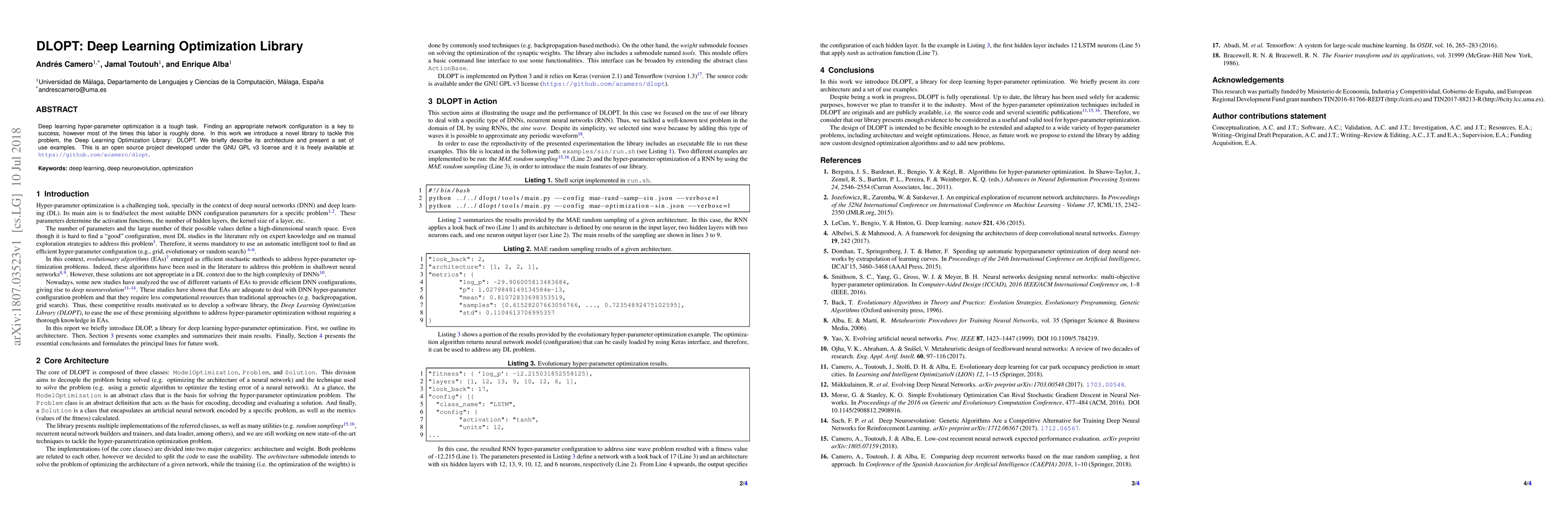 The DLOPT library aims to simplify deep learning hyper-parameter optimization by providing a novel, open-source solution under the GNU GPL v3 license. It offers an accessible architecture and practical examples to facilitate efficient network configuration.