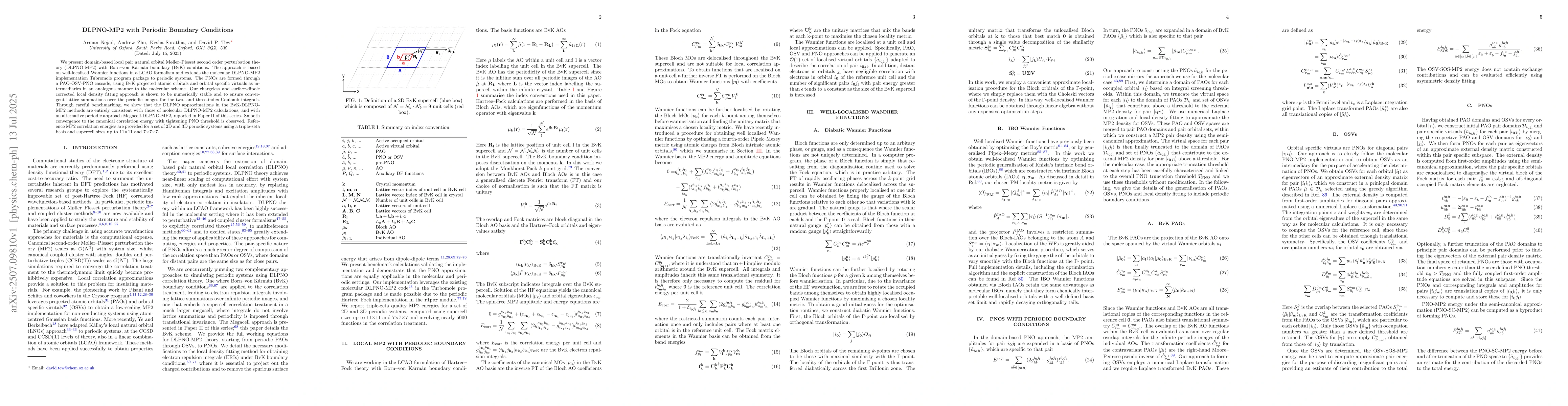 We present domain-based local pair natural orbital M{\o}ller--Plesset second order perturbation theory (DLPNO-MP2) with Born--von K{\'a}rm{\'a}n boundary (BvK) conditions. The approach is based on well-localised Wannier functions in a LCAO formalism and extends the molecular DLPNO-MP2 implementation Tubromole program package to periodic systems. The PNOs are formed through a PAO-OSV-PNO cascade, using BvK projected atomic orbitals and orbital specific virtuals as intermediaries in an analogous manner to the molecular scheme. Our chargeless and surface-dipole corrected local density fitting approach is shown to be numerically stable and to ensure convergent lattice summations over the periodic images for the two- and three-index Coulomb integrals. Through careful benchmarking, we show that the DLPNO approximations in the BvK-DLPNO-MP2 methods are entirely consistent with those of molecular DLPNO-MP2 calculations, and with an alternative periodic approach Megacell-DLPNO-MP2, reported in Paper II of this series. Smooth convergence to the canonical correlation energy with tightening PNO threshold is observed. Reference MP2 correlation energies are provided for a set of 2D and 3D periodic systems using a triple-zeta basis and supercell sizes up to 11$\times$11 and 7$\times$7$\times$7.