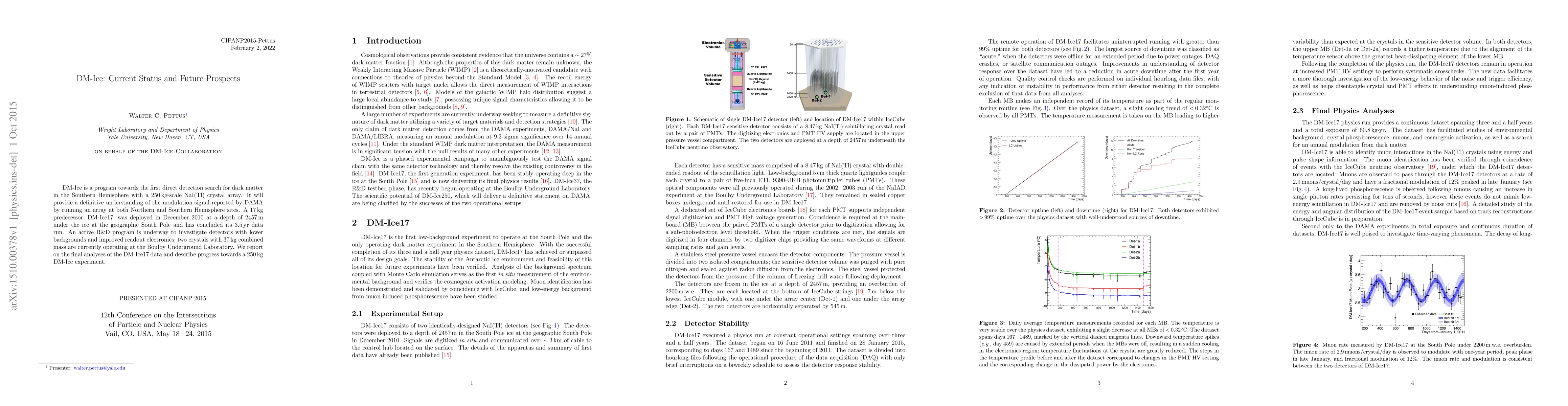 The DM-Ice project aims to directly detect dark matter using sodium iodide detectors in the Southern Hemisphere, building on previous experiments at the South Pole. It seeks to confirm or refute signals reported by other experiments by deploying larger, more sensitive detectors and improving background noise reduction.