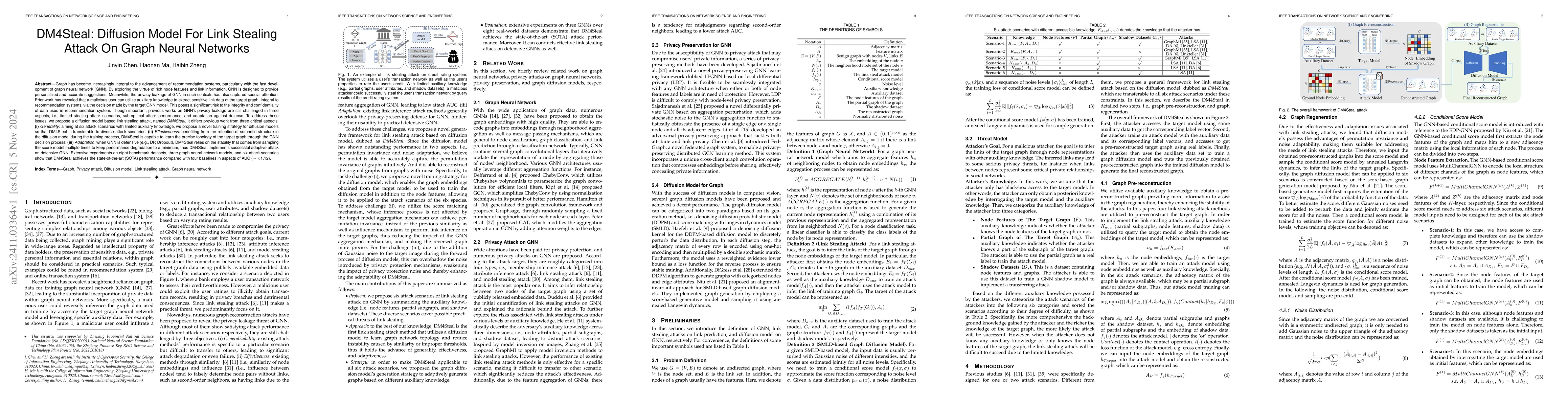 DM4Steal, a diffusion model-based link stealing attack, addresses privacy leakage in graph neural networks (GNN) by effectively learning the precise topology of target graphs, generalizing across diverse scenarios, and adapting to defensive measures, thereby posing a significant threat to recommendation system integrity.