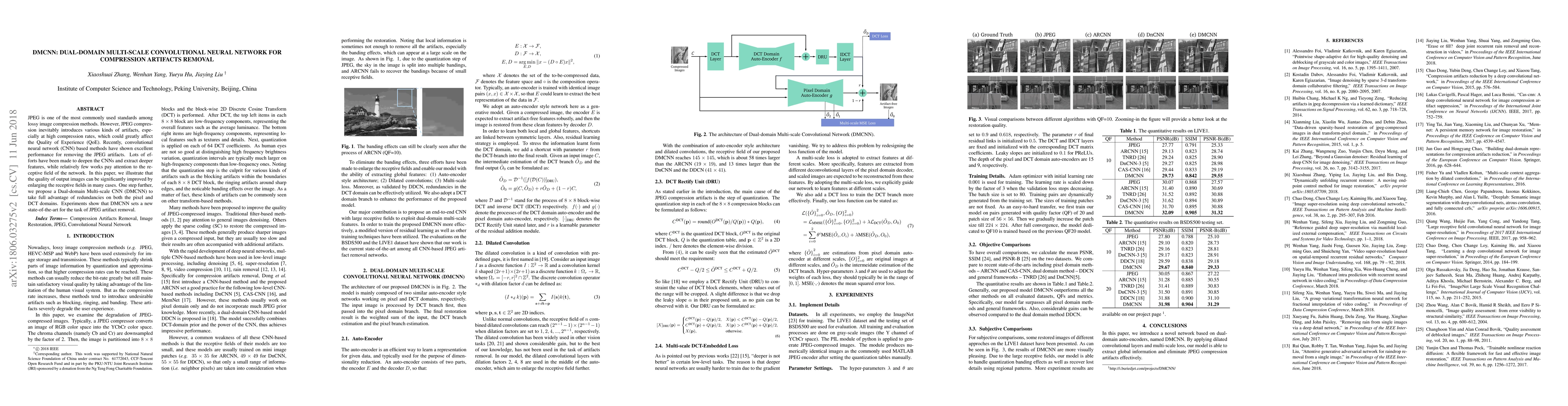The paper proposes a Dual-domain Multi-scale Convolutional Neural Network (DMCNN) to effectively remove JPEG compression artifacts, emphasizing the importance of enlarging receptive fields and utilizing redundancies in both pixel and DCT domains. Experimental results demonstrate that DMCNN achieves state-of-the-art performance in artifact removal.