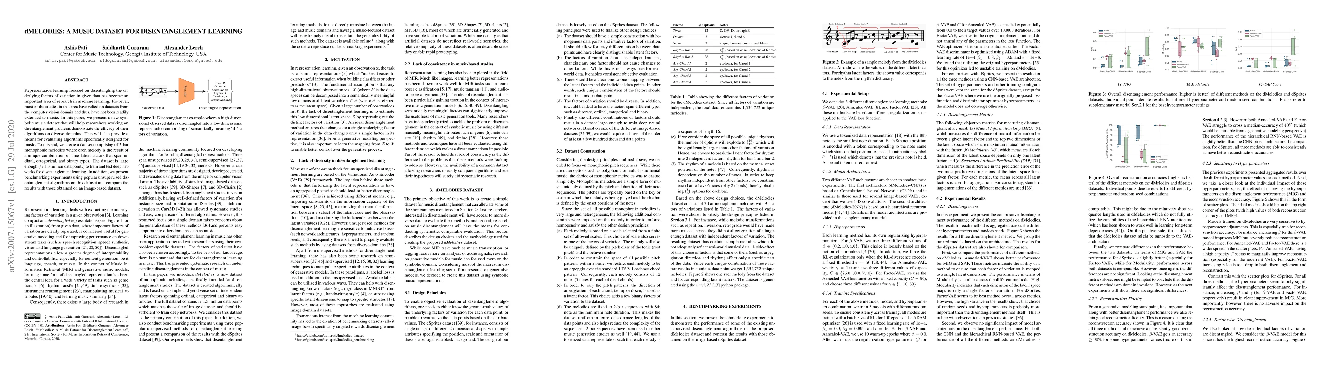 This paper introduces dMelodies, a new symbolic music dataset for disentanglement learning, comprising 1.3 million 2-bar monophonic melodies generated by nine latent factors. The dataset aims to evaluate algorithms designed for music and demonstrate their effectiveness across diverse domains.