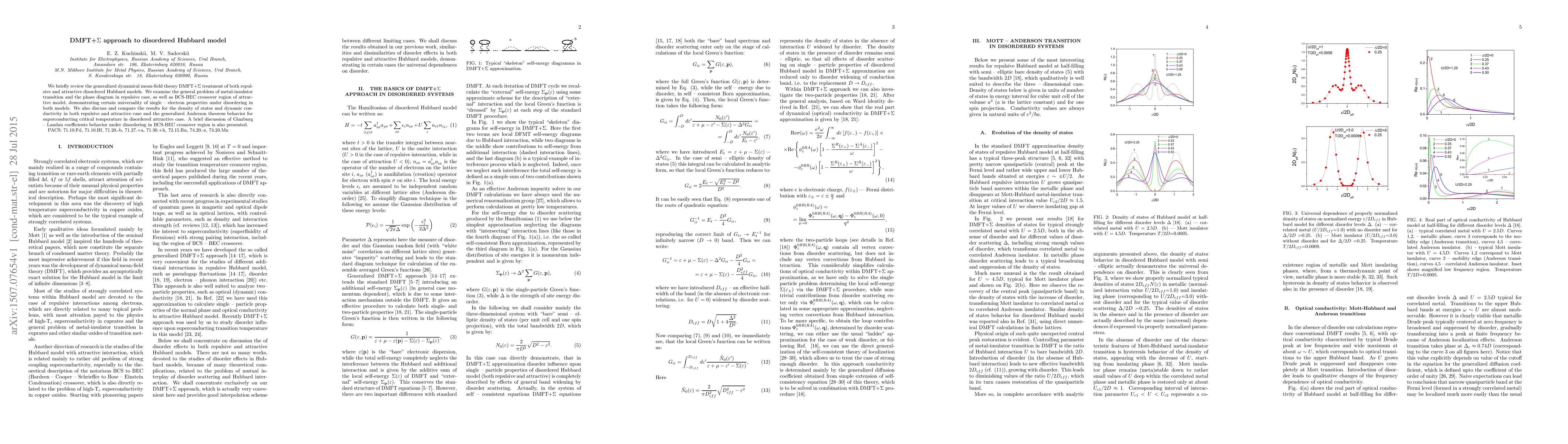 The paper presents a detailed examination of disorder effects in Hubbard models using the DMFT+Σ approach, revealing universal behavior in single-particle properties and superconducting critical temperature in certain models.