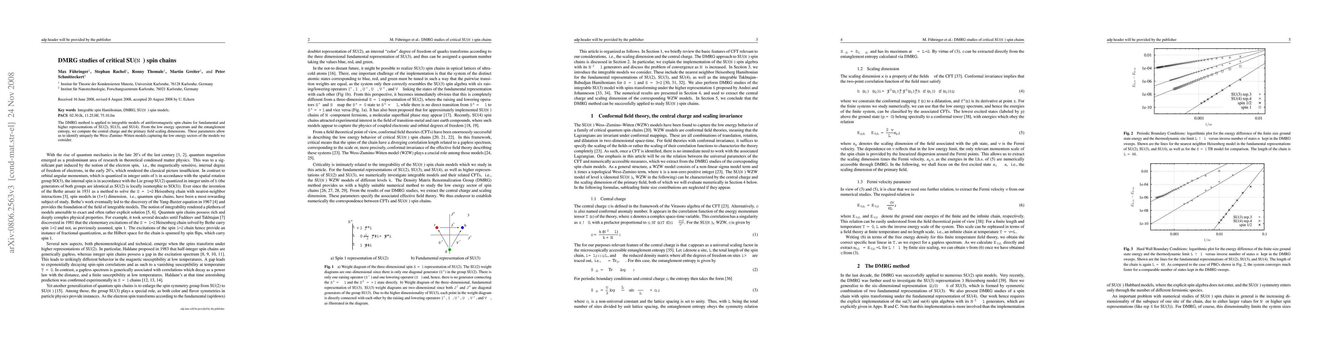 The DMRG method is applied to integrable models of antiferromagnetic spin chains for fundamental and higher representations of SU(2), SU(3), and SU(4). From the low energy spectrum and the entanglement entropy, we compute the central charge and the primary field scaling dimensions. These parameters allow us to identify uniquely the Wess-Zumino-Witten models capturing the low energy sectors of the models we consider.