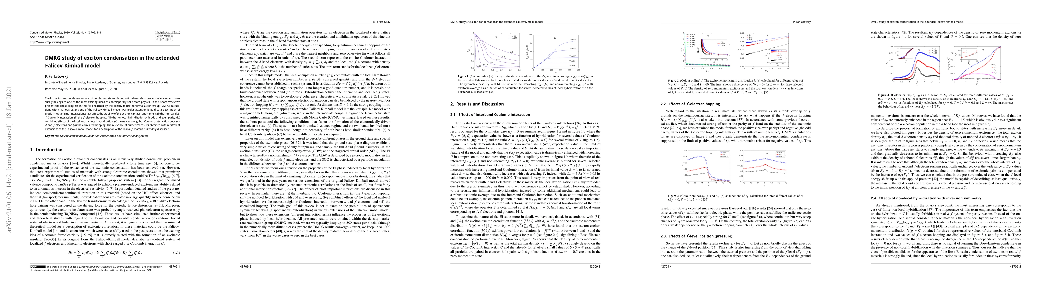 The formation and condensation of excitonic bound states of conduction-band electrons and valence-band holes surely belongs to one of the most exciting ideas of contemporary solid state physics. In this short review we present the latest progress in this field reached by the density-matrix-renormalization-group (DMRG) calculations within various extensions of the Falicov-Kimball model. Particular attention is paid to a description of crucial mechanisms (interactions) that affect the stability of the excitonic phase, and namely: (i) the interband $d$-$f$ Coulomb interaction, (ii) the $f$-electron hopping, (iii) the nonlocal hybridization with odd and even parity, (iv) combined effects of the local and nonlocal hybridization, (v) the nearest-neighbor Coulomb interaction between $d$ and $f$ electrons and (vi) the correlated hopping. The relevance of numerical results obtained within different extensions of the Falicov-Kimball model for a description of the real $d$-$f$ materials is widely discussed.