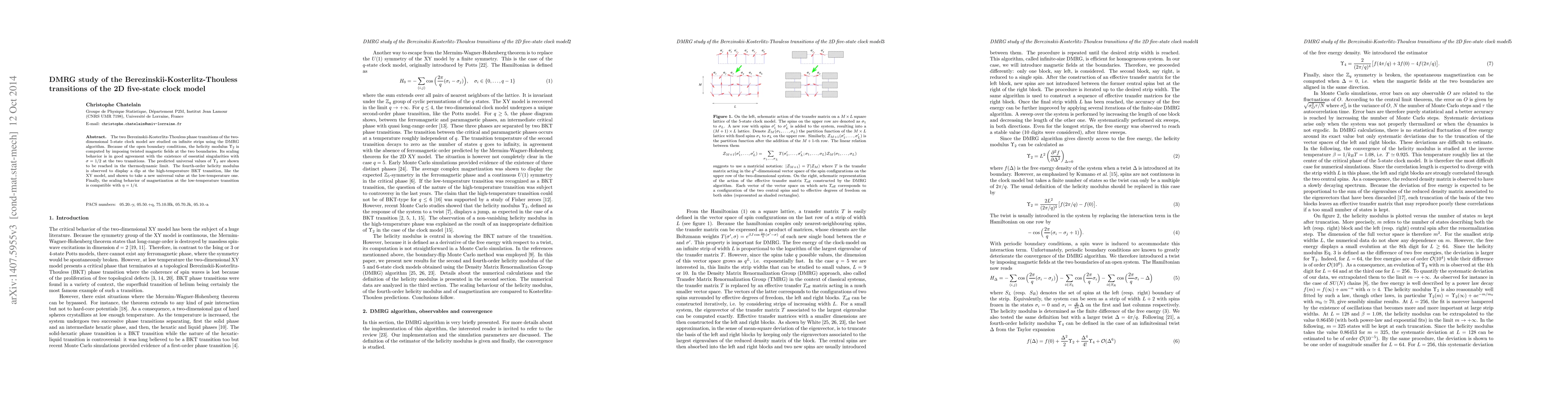 Researchers used DMRG algorithm to study phase transitions in a 2D clock model, finding good agreement with Berezinskii-Kosterlitz-Thouless theory and observing universal values at the transitions.