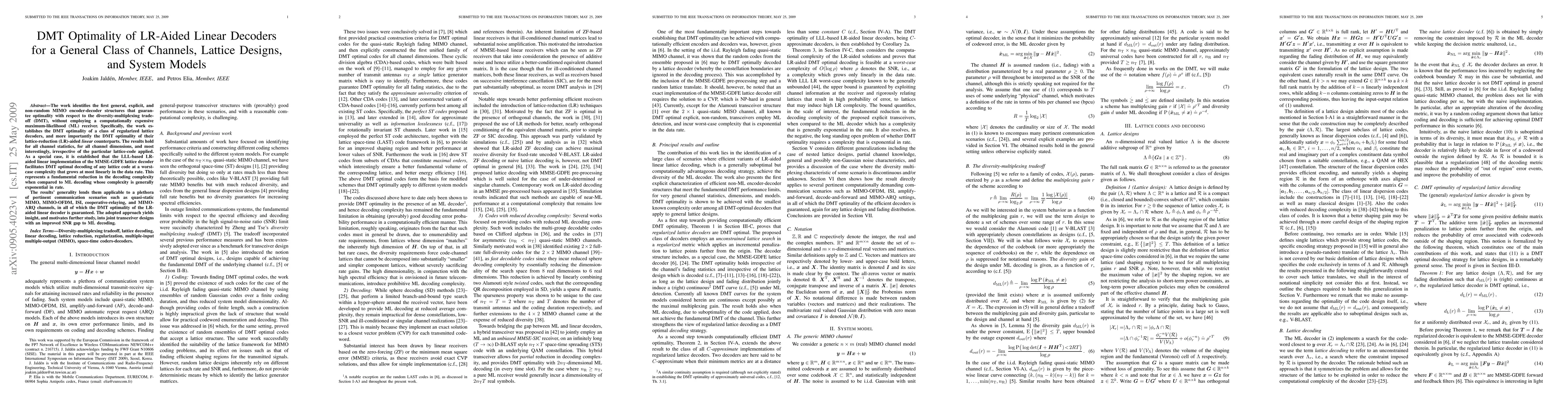 The work identifies the first general, explicit, and non-random MIMO encoder-decoder structures that guarantee optimality with respect to the diversity-multiplexing tradeoff (DMT), without employing a computationally expensive maximum-likelihood (ML) receiver. Specifically, the work establishes the DMT optimality of a class of regularized lattice decoders, and more importantly the DMT optimality of their lattice-reduction (LR)-aided linear counterparts. The results hold for all channel statistics, for all channel dimensions, and most interestingly, irrespective of the particular lattice-code applied. As a special case, it is established that the LLL-based LR-aided linear implementation of the MMSE-GDFE lattice decoder facilitates DMT optimal decoding of any lattice code at a worst-case complexity that grows at most linearly in the data rate. This represents a fundamental reduction in the decoding complexity when compared to ML decoding whose complexity is generally exponential in rate. The results' generality lends them applicable to a plethora of pertinent communication scenarios such as quasi-static MIMO, MIMO-OFDM, ISI, cooperative-relaying, and MIMO-ARQ channels, in all of which the DMT optimality of the LR-aided linear decoder is guaranteed. The adopted approach yields insight, and motivates further study, into joint transceiver designs with an improved SNR gap to ML decoding.