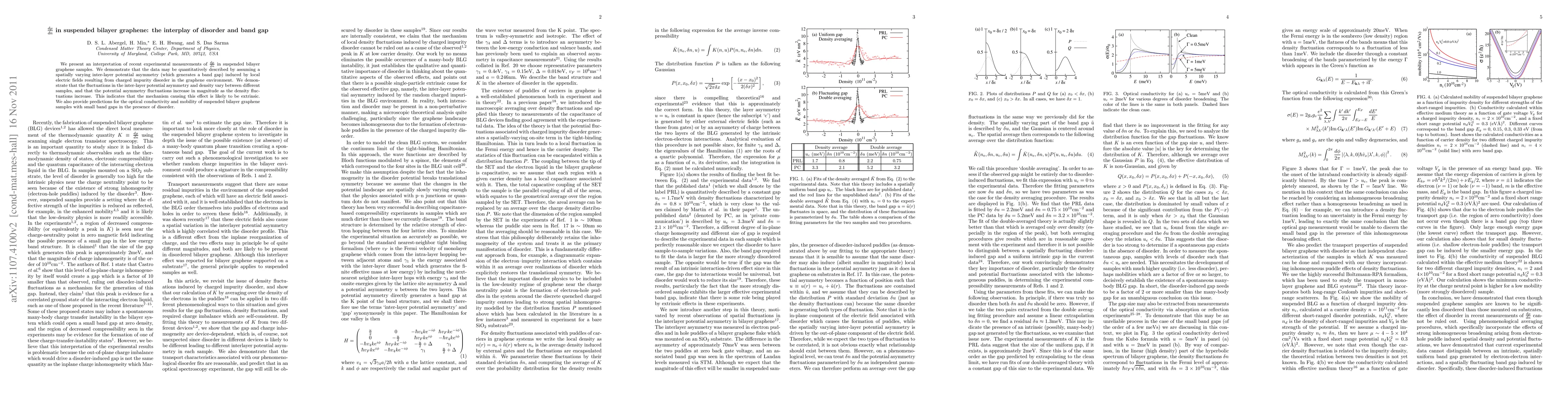 This paper interprets experimental measurements of dmu/dn in suspended bilayer graphene, attributing observed variations to a spatially varying band gap caused by local electric fields. The study finds that these fluctuations correlate with charge density variations, suggesting an extrinsic origin, and provides predictions for optical conductivity and mobility in samples with small band gaps.