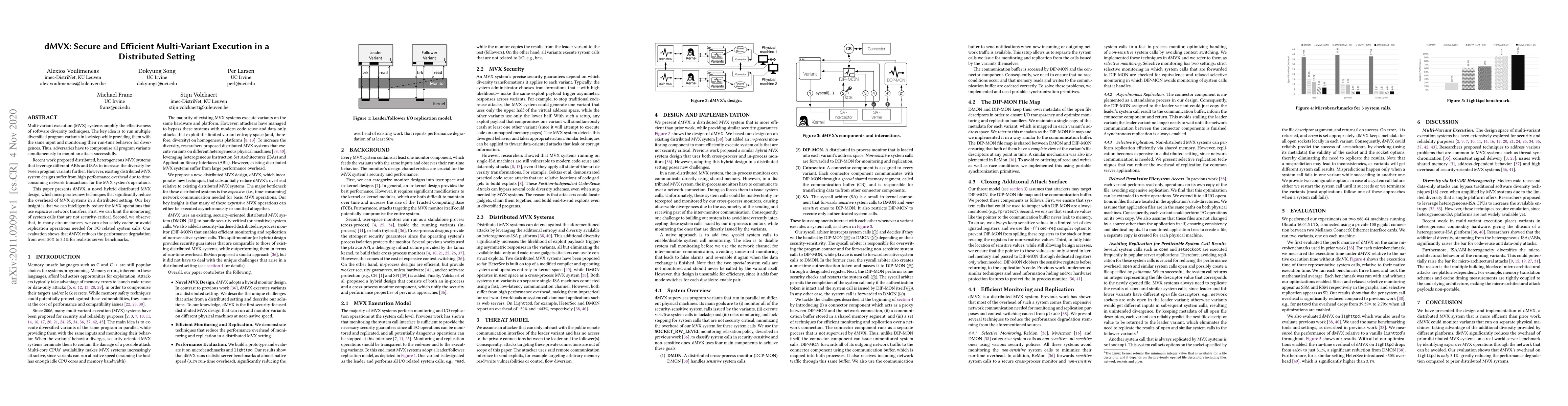 Multi-variant execution (MVX) systems amplify the effectiveness of software diversity techniques. The key idea is to run multiple diversified program variants in lockstep while providing them with the same input and monitoring their run-time behavior for divergences. Thus, adversaries have to compromise all program variants simultaneously to mount an attack successfully. Recent work proposed distributed, heterogeneous MVX systems that leverage different ABIs and ISAs to increase the diversity between program variants further. However, existing distributed MVX system designs suffer from high performance overhead due to time-consuming network transactions for the MVX system's operations. This paper presents dMVX, a novel hybrid distributed MVX design, which incorporates new techniques that significantly reduce the overhead of MVX systems in a distributed setting. Our key insight is that we can intelligently reduce the MVX operations that use expensive network transfers. First, we can limit the monitoring of system calls that are not security-critical. Second, we observe that, in many circumstances, we can also safely cache or avoid replication operations needed for I/O related system calls. Our evaluation shows that dMVX reduces the performance degradation from over 50% to 3.1% for realistic server benchmarks.