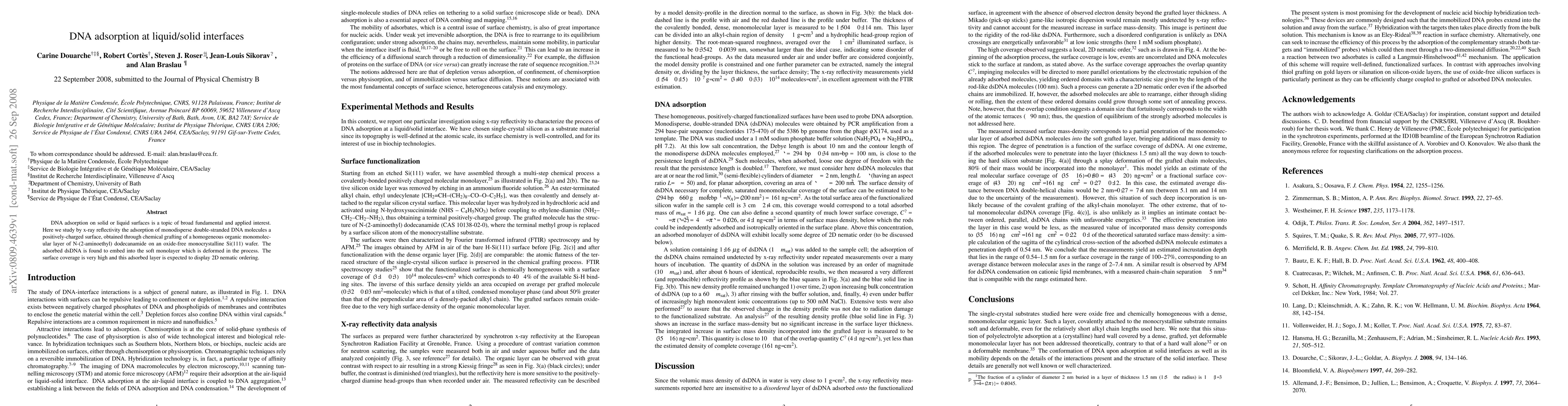 The study uses x-ray reflectivity to investigate DNA adsorption, revealing new insights into the behavior of double-stranded DNA at liquid/solid interfaces.