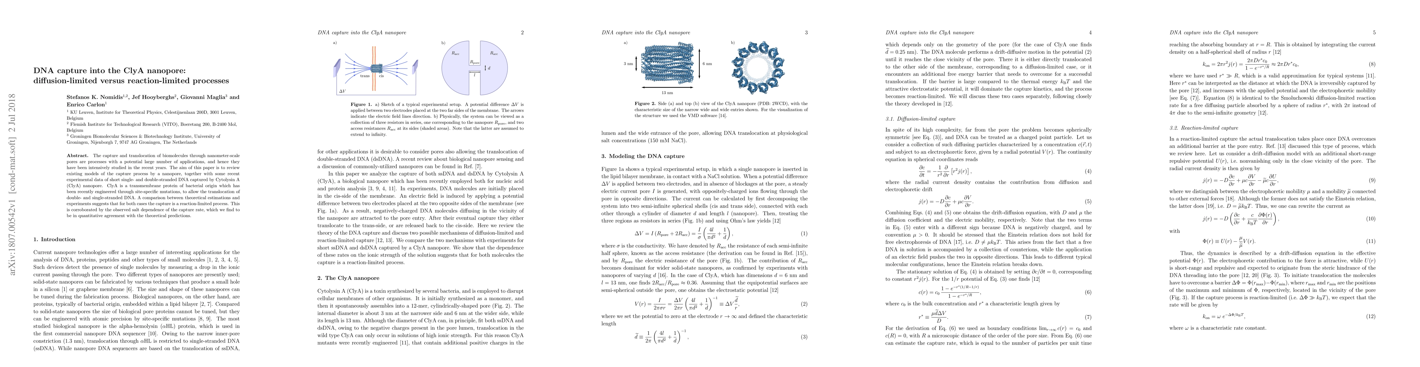 This paper reviews models of DNA capture by the ClyA nanopore, showing that the capture process is reaction-limited rather than diffusion-limited, supported by experimental data and theoretical predictions, particularly regarding salt dependence.