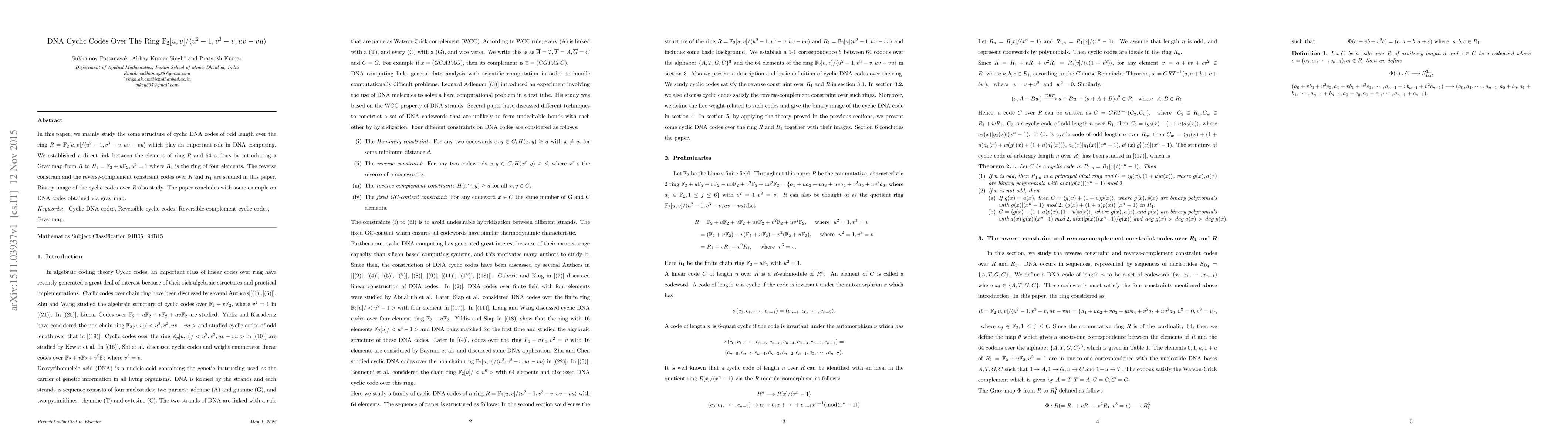 This paper investigates cyclic DNA codes of odd length over a specific ring $R$ and establishes a connection between its elements and 64 codons using a Gray map. It examines reverse and reverse-complement constraints, binary representations, and provides examples of DNA codes derived through the Gray map.