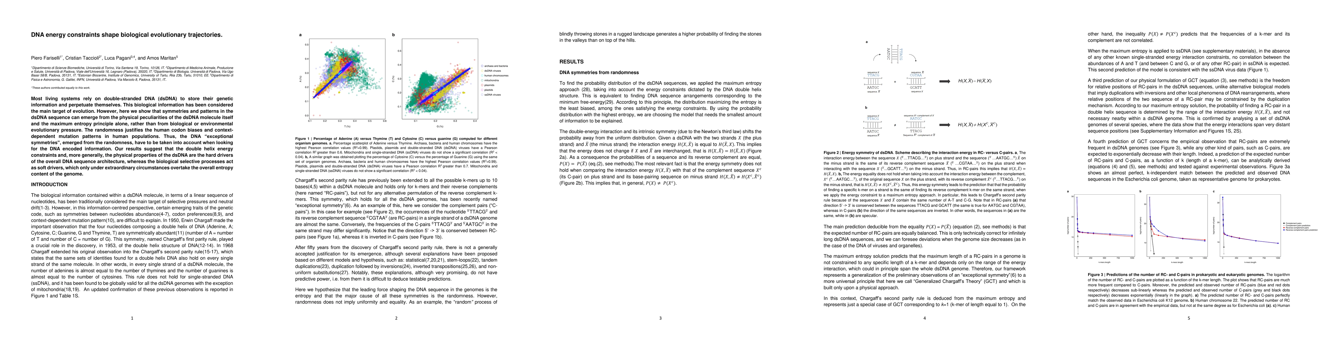 Most living systems rely on double-stranded DNA (dsDNA) to store their genetic information and perpetuate themselves. This biological information has been considered the main target of evolution. However, here we show that symmetries and patterns in the dsDNA sequence can emerge from the physical peculiarities of the dsDNA molecule itself and the maximum entropy principle alone, rather than from biological or environmental evolutionary pressure. The randomness justifies the human codon biases and context-dependent mutation patterns in human populations. Thus, the DNA "exceptional symmetries", emerged from the randomness, have to be taken into account when looking for the DNA encoded information. Our results suggest that the double helix energy constraints and, more generally, the physical properties of the dsDNA are the hard drivers of the overall DNA sequence architecture, whereas the biological selective processes act as soft drivers, which only under extraordinary circumstances overtake the overall entropy content of the genome.