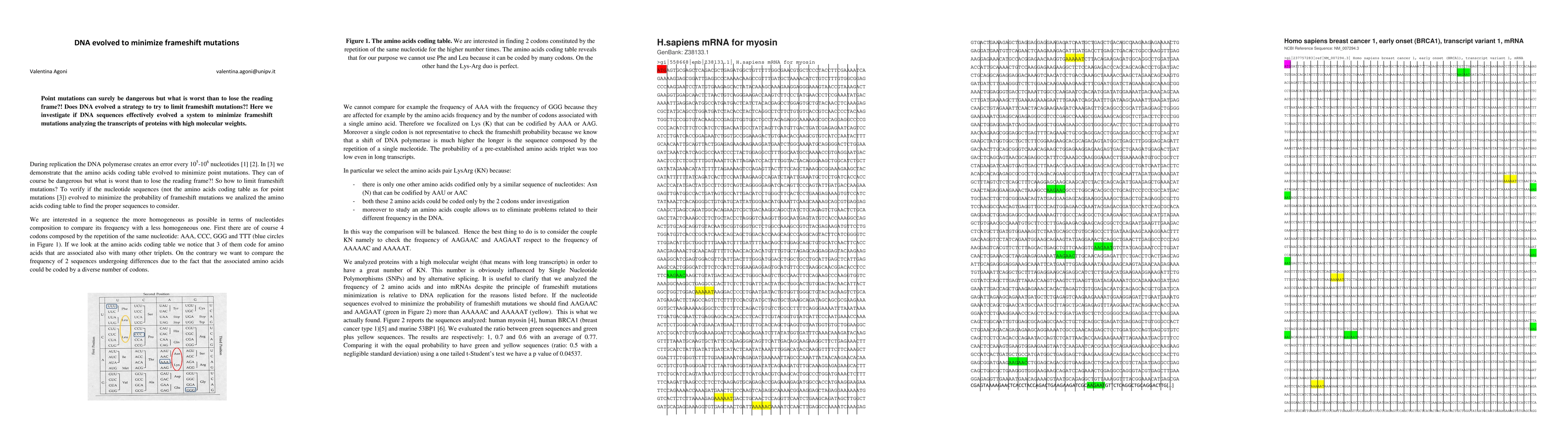 Point mutations can surely be dangerous but what is worst than to lose the reading frame?! Does DNA evolved a strategy to try to limit frameshift mutations?! Here we investigate if DNA sequences effectively evolved a system to minimize frameshift mutations analyzing the transcripts of proteins with high molecular weights.