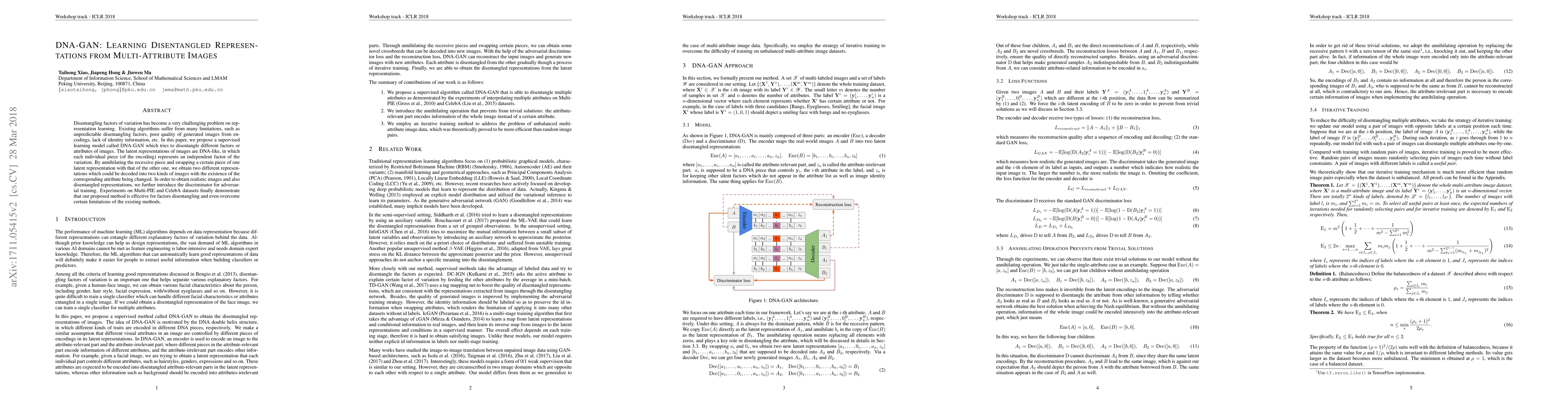 DNA-GAN proposes a supervised learning model to disentangle image attributes, ensuring each latent piece represents an independent factor. The method uses adversarial training with a discriminator to generate realistic images, outperforming existing methods in disentangling factors as shown by experiments on Multi-PIE and CelebA datasets.