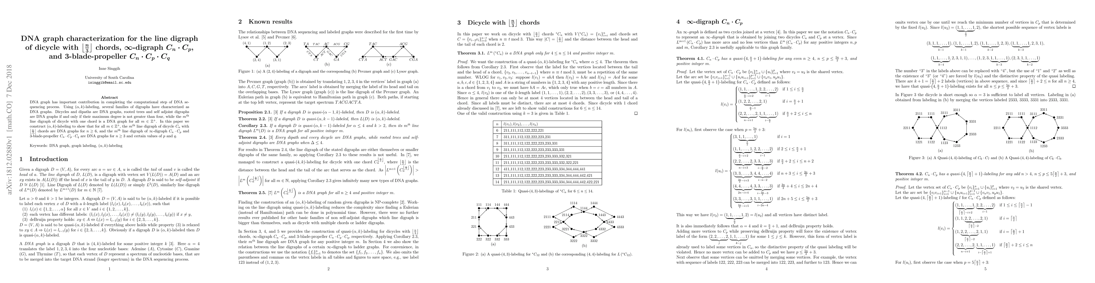 DNA graph has important contribution in completing the computational step of DNA sequencing process. Using $(\alpha,k)$-labeling, several families of digraphs have characterized as DNA graphs. Dicycles and dipaths are DNA graphs, rooted trees and self adjoint digraphs are DNA graphs if and only if their maximum degree is not greater than four, while the $m^{\text{th}}$ line digraph of dicycle with one chord is a DNA graph for all $m\in\mathbb{Z}^+$. In this paper we construct $(\alpha,k)$-labeling to show that for all $m\in\mathbb{Z}^+$, the $m^{\text{th}}$ line digraph of dicycle $C_n$ with $\left\lfloor{\frac{n}{3}}\right \rfloor$ chords are DNA graphs for $n\geq 6$, and the $m^{\text{th}}$ line digraph of $\infty$-digraph $C_n\cdot C_p$ and 3-blade-propeller $C_n\cdot C_p \cdot C_q$ are DNA graphs for $n\geq 3$ and certain values of $p$ and $q$.
