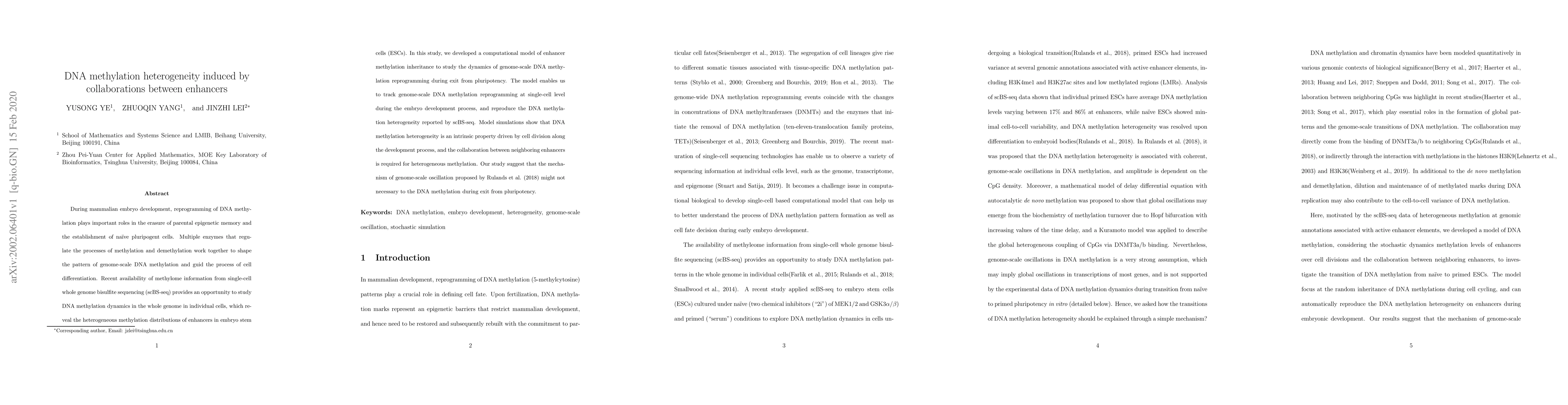 This study investigates DNA methylation heterogeneity during mammalian embryo development using a computational model of enhancer methylation. The model reveals that DNA methylation heterogeneity is driven by cell division and enhancer collaborations, challenging the necessity of genome-scale oscillation mechanisms for methylation during differentiation.