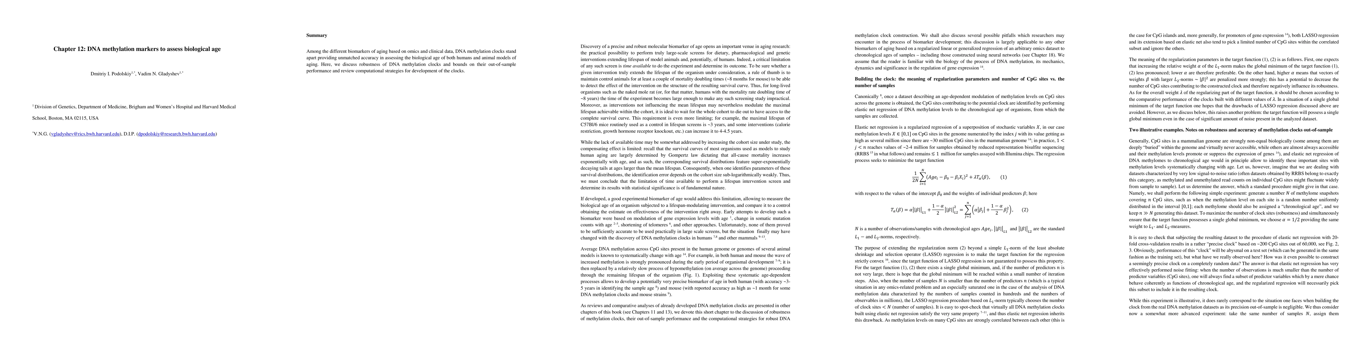 Among the different biomarkers of aging based on omics and clinical data, DNA methylation clocks stand apart providing unmatched accuracy in assessing the biological age of both humans and animal models of aging. Here, we discuss robustness of DNA methylation clocks and bounds on their out-of-sample performance and review computational strategies for development of the clocks.
