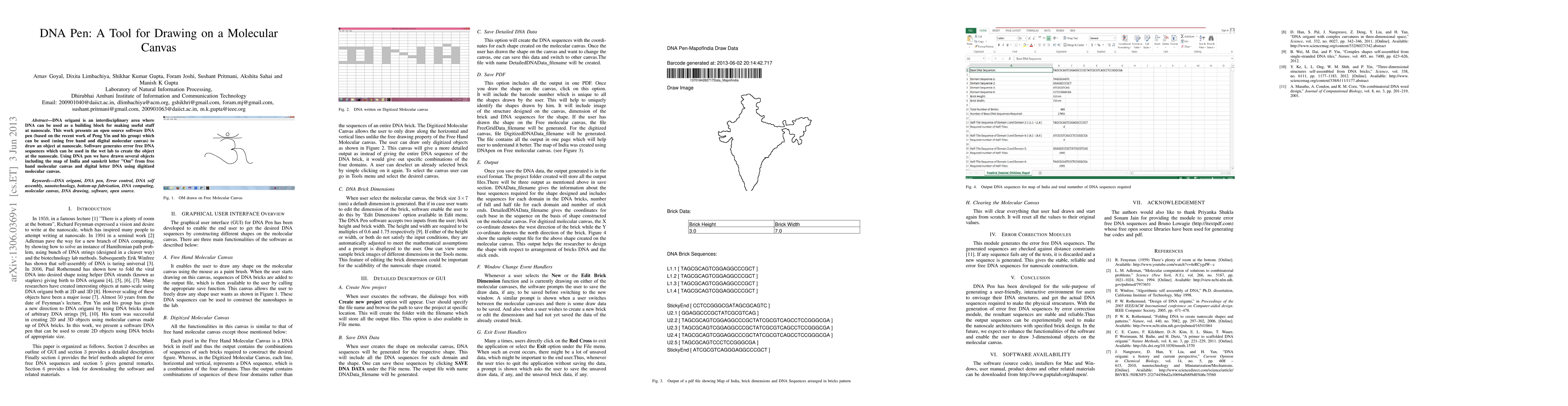 DNA origami is an interdisciplinary area where DNA can be used as a building block for making useful stuff at nanoscale. This work presents an open source software DNA pen (based on the recent work of Peng Yin and his group) which can be used (using free hand and digital molecular canvas) to draw an object at nanoscale. Software generates error free DNA sequences which can be used in the wet lab to create the object at the nanoscale. Using DNA pen we have drawn several objects including the map of India and sanskrit letter "Om" from free hand molecular canvas and digital letter DNA using digitized molecular canvas.