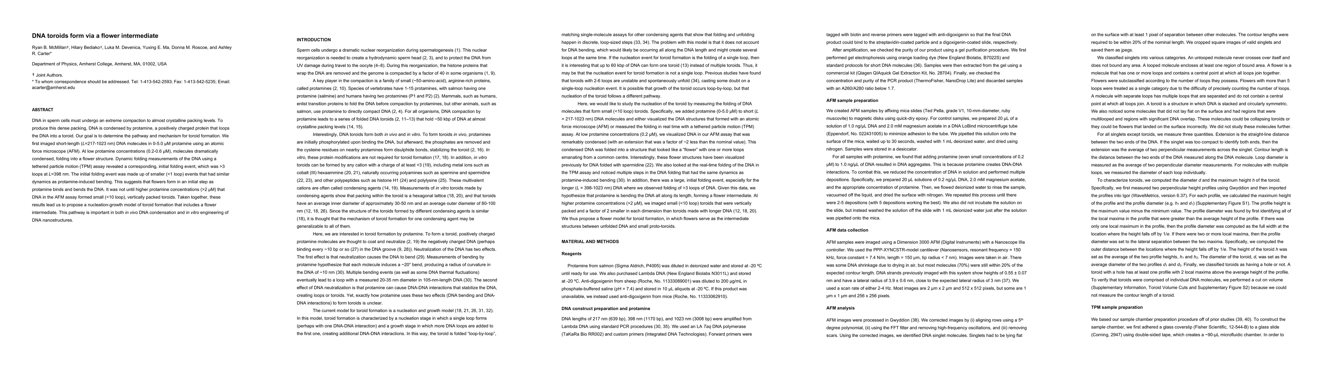 DNA molecules in sperm cells form toroids through a flower intermediate, with an initial folding event followed by higher protamine concentrations leading to compacted toroids.