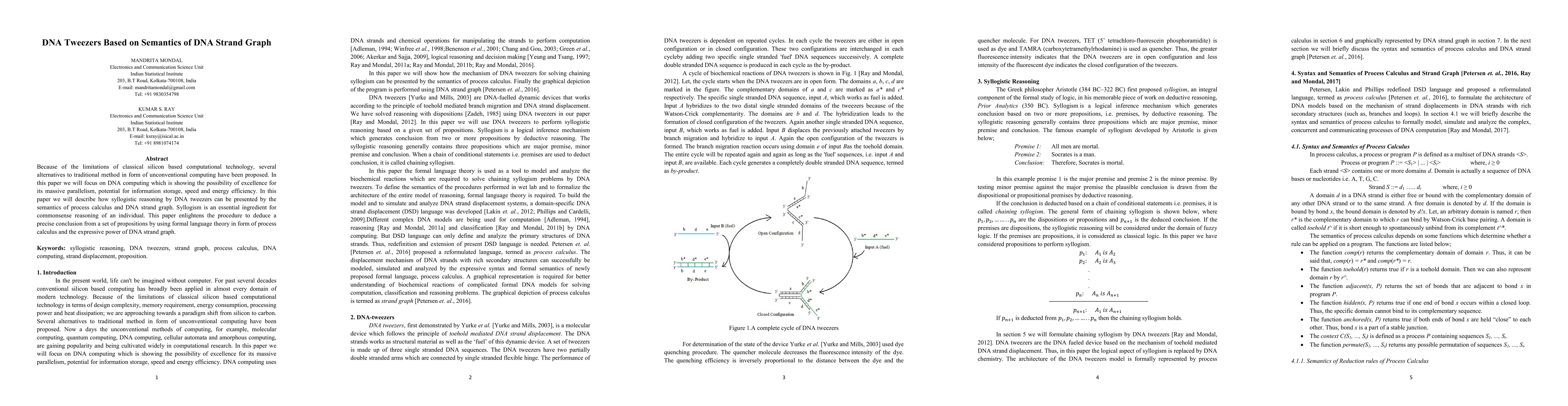 This paper explores DNA computing's potential for massive parallelism and energy efficiency, focusing on using DNA tweezers to implement syllogistic reasoning through the semantics of process calculus and DNA strand graph for commonsense reasoning. It details a method to derive precise conclusions from propositions using formal language theory.