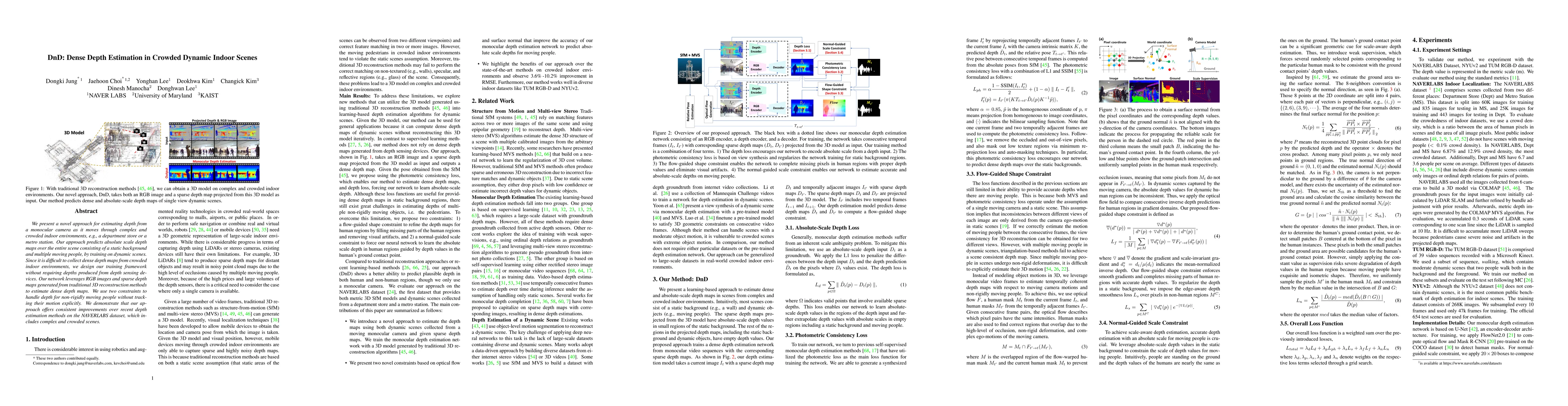 This paper introduces a novel method for dense depth estimation in crowded indoor environments using monocular RGB images and sparse depth maps. The approach predicts absolute scale depth maps without requiring dense depth sensors, demonstrating consistent improvements over recent methods on the NAVERLABS dataset.