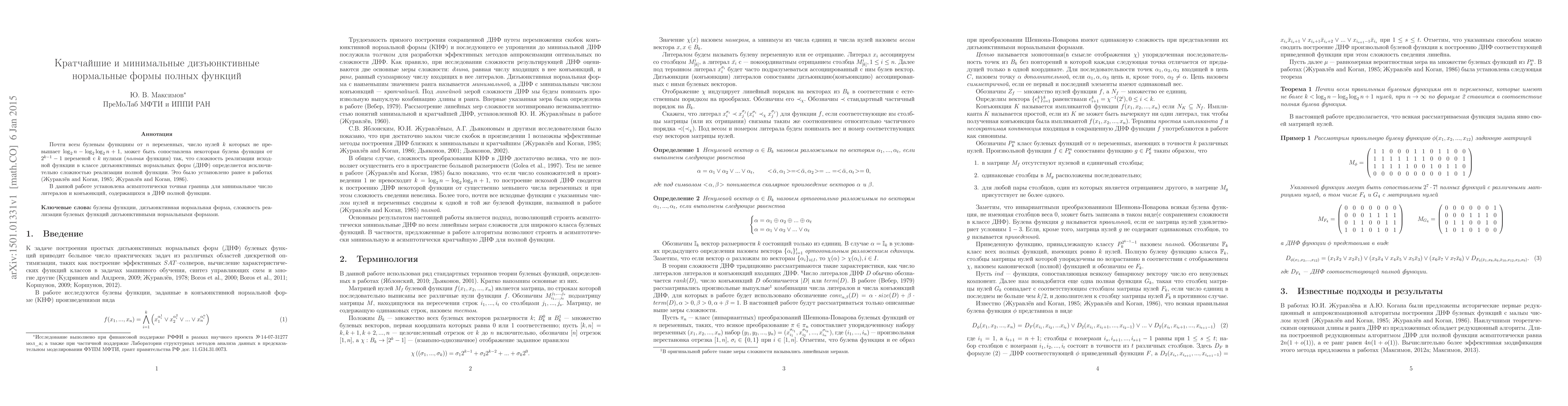 In this paper we analyse the complexity of boolean functions takes value 0 on a sufficiently small number of points. For many functions this leads to the analysis of a single function attains 0 only on unsigned representation of numbers from 1 to d for various d. Here we obtain a tight bounds on the DNF complexity of complete functions in terms of the number of literals and conjunctions. The method is based on a certain efficient approximation of the hypercube covering problem related to DNF complexity of a given boolean function.