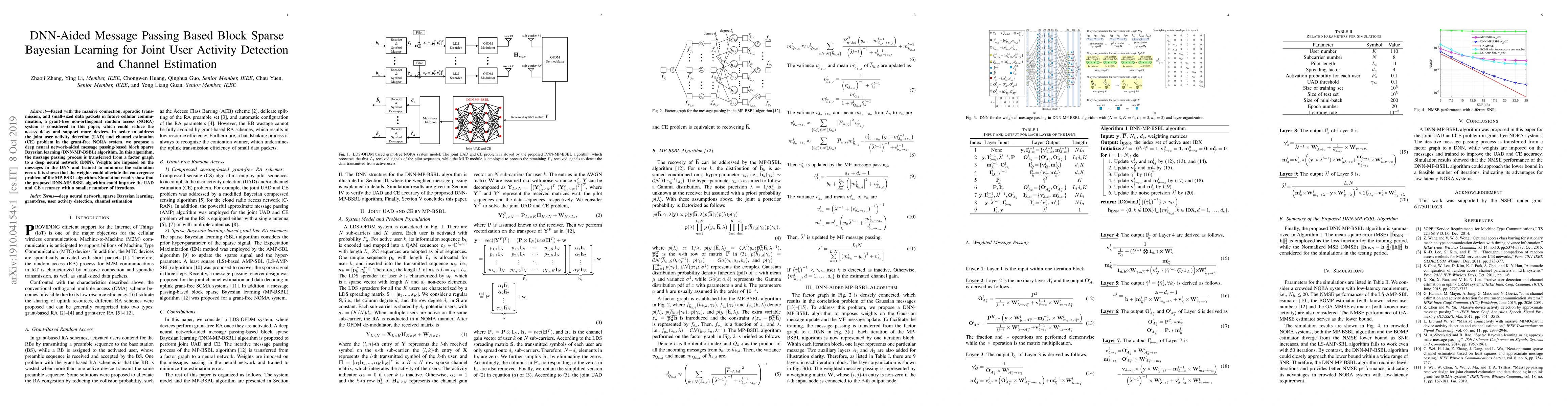 This paper proposes a DNN-MP-BSBL algorithm for a grant-free non-orthogonal random access system to jointly enhance user activity detection and channel estimation. The algorithm leverages deep neural networks to optimize message passing, improving convergence and reducing iteration counts for better accuracy.