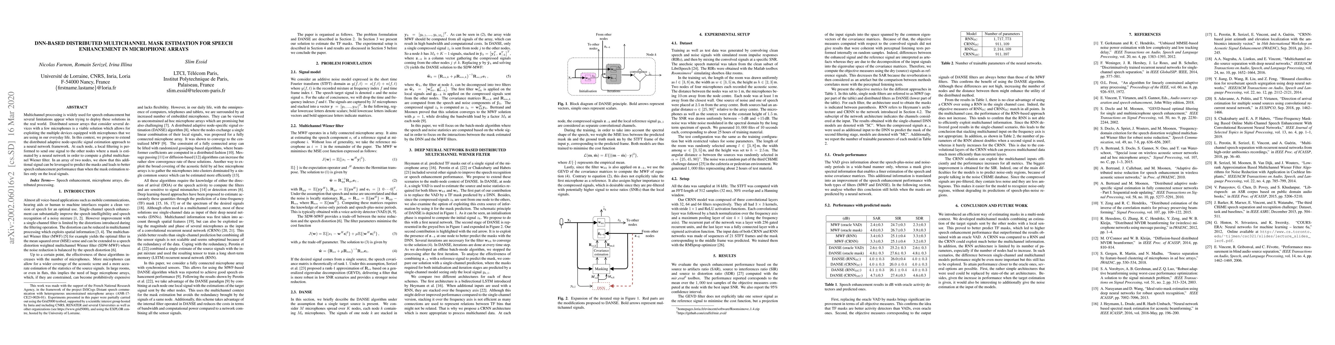 This paper proposes a DNN-based approach for enhancing speech in distributed microphone arrays by estimating masks through a neural network, combining local filtering and global multi-channel Wiener filtering for improved performance over local-only methods. The method shows enhanced speech enhancement in a two-node array setup.