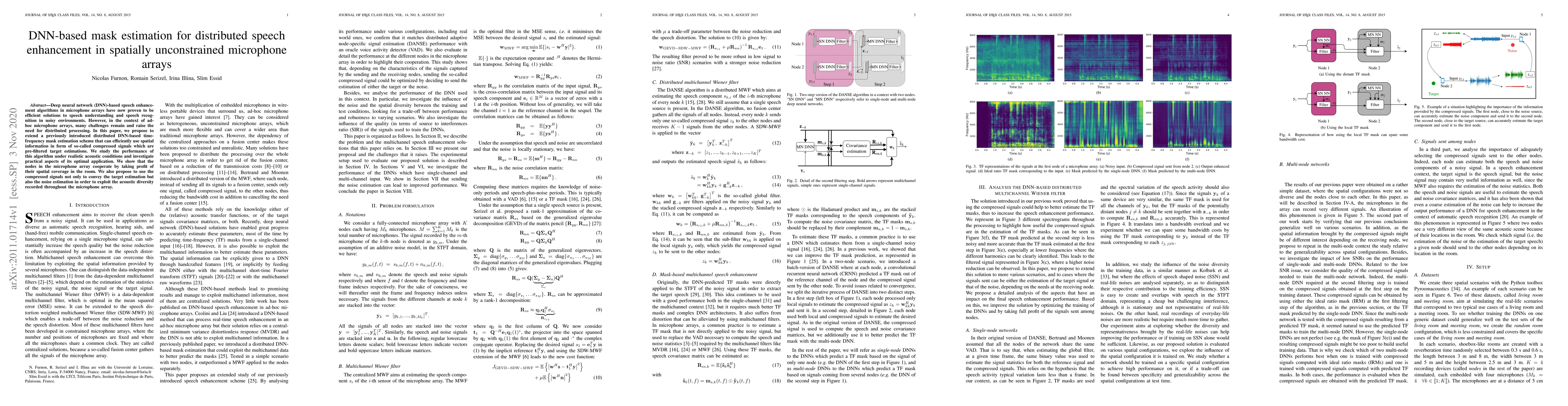 Deep neural network (DNN)-based speech enhancement algorithms in microphone arrays have now proven to be efficient solutions to speech understanding and speech recognition in noisy environments. However, in the context of ad-hoc microphone arrays, many challenges remain and raise the need for distributed processing. In this paper, we propose to extend a previously introduced distributed DNN-based time-frequency mask estimation scheme that can efficiently use spatial information in form of so-called compressed signals which are pre-filtered target estimations. We study the performance of this algorithm under realistic acoustic conditions and investigate practical aspects of its optimal application. We show that the nodes in the microphone array cooperate by taking profit of their spatial coverage in the room. We also propose to use the compressed signals not only to convey the target estimation but also the noise estimation in order to exploit the acoustic diversity recorded throughout the microphone array.