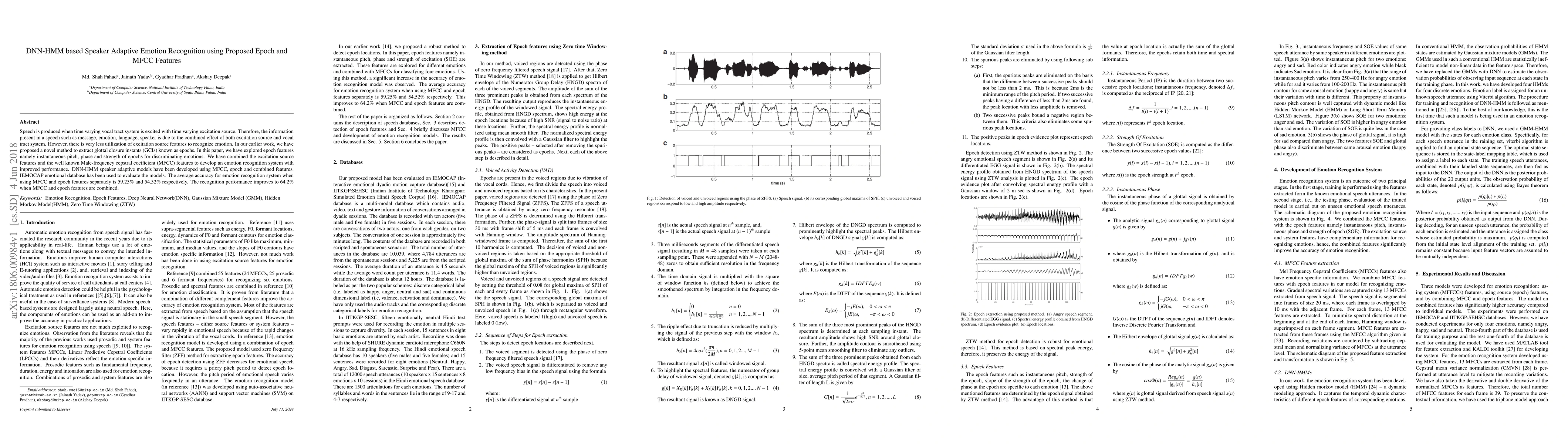 This paper presents a speaker adaptive emotion recognition system using a combination of excitation source features and MFCC features, achieving an average accuracy of 64.2% on the IEMOCAP emotional database.