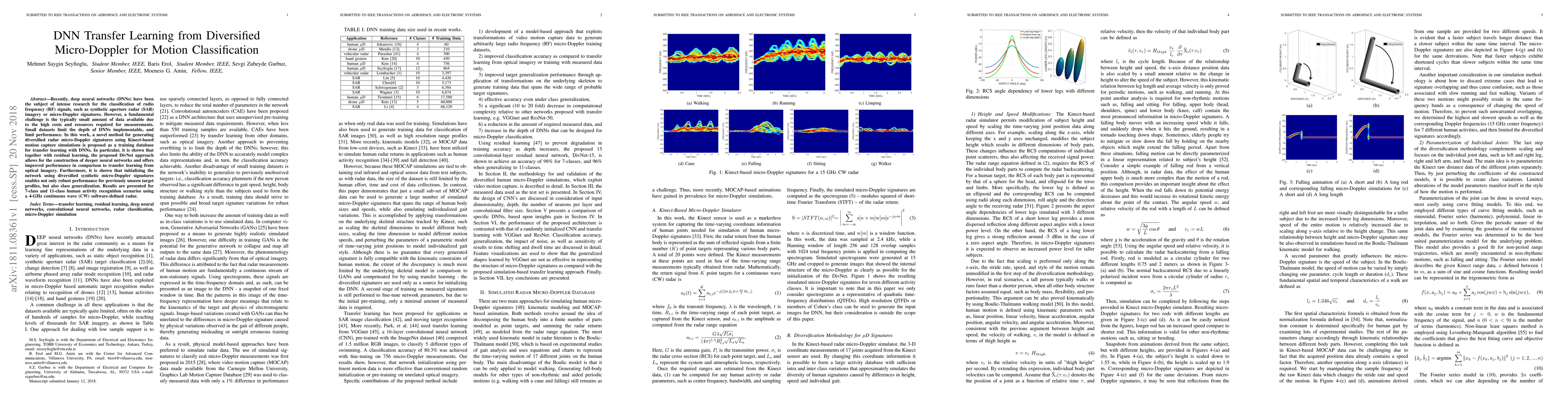 This paper proposes a novel method to generate diversified radar micro-Doppler signatures via Kinect-based simulations to train deep neural networks (DNNs) for transfer learning. The DivNet approach, combined with residual learning, enables the construction of deeper networks, enhancing classification performance for previously unseen target profiles and improving class generalization in human activity recognition.