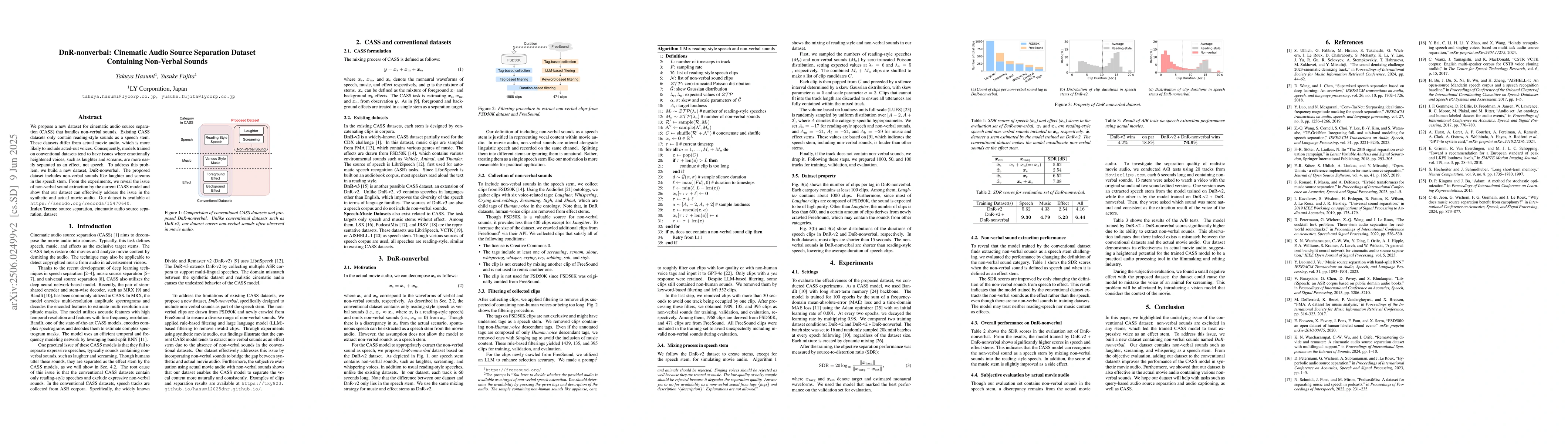 A new dataset addresses a limitation in cinematic audio source separation models by incorporating non-verbal sounds like laughter and screams into the speech stem, improving their performance on emotionally heightened voices.