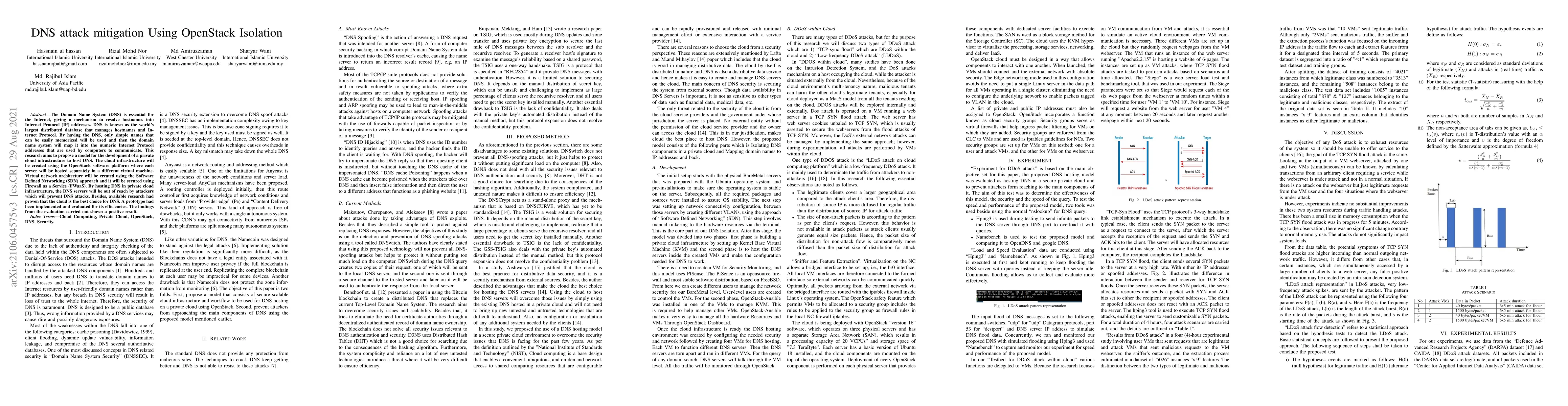 This research proposes a private cloud infrastructure using OpenStack to host DNS, isolating servers in different virtual machines and securing them with Firewall as a Service (FWaaS). The study demonstrates that this approach effectively mitigates DNS attacks by keeping DNS servers out of attackers' reach, supported by a prototype implementation showing positive results.