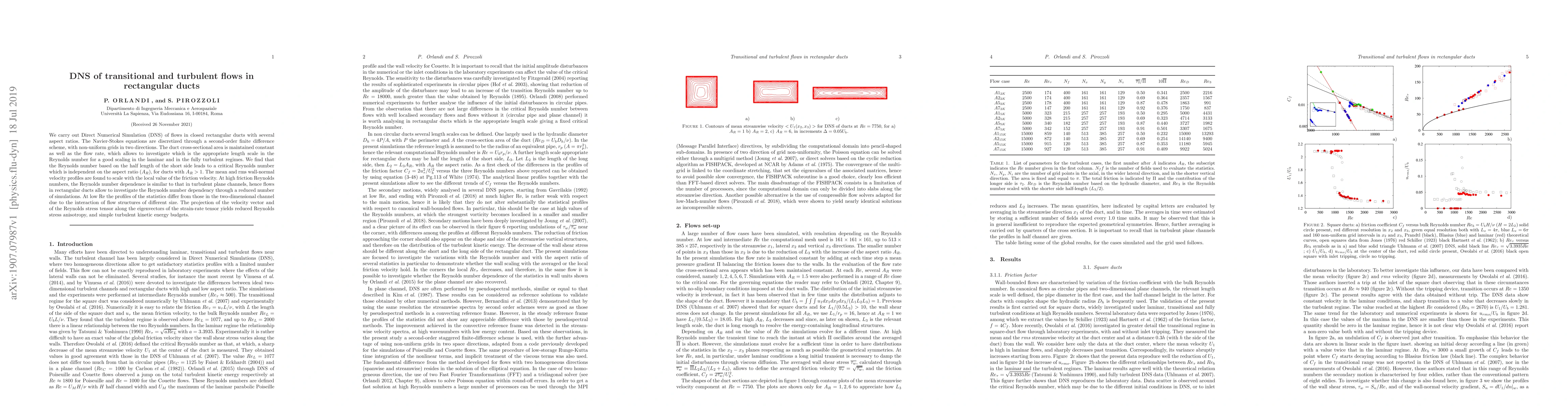This paper conducts Direct Numerical Simulation (DNS) of transitional and turbulent flows in rectangular ducts, finding that the Reynolds number based on the half length of the short side provides a critical, aspect-ratio-independent scaling for AR > 1. The study reveals that high Reynolds number flows in ducts exhibit similar scaling to turbulent plane channels, while low Reynolds number flows show differences due to multi-scale flow interactions.
