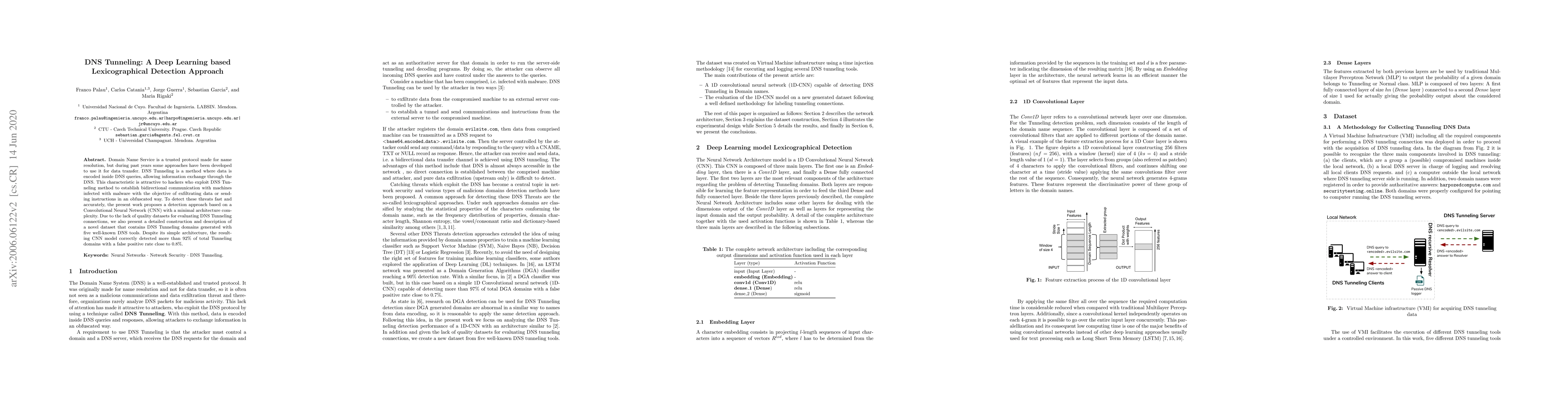 This paper proposes a Convolutional Neural Network (CNN) for detecting DNS Tunneling, a method used by hackers to obfuscate data transfer through DNS queries. The study also introduces a new dataset for evaluating DNS Tunneling detection, achieving over 92% accuracy with minimal false positives.