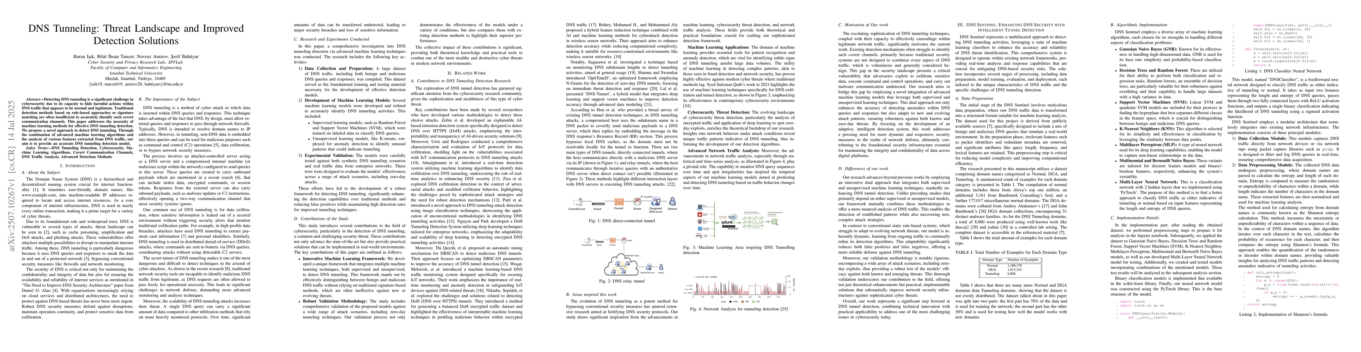 Detecting Domain Name System (DNS) tunneling is a significant challenge in security due to its capacity to hide harmful actions within DNS traffic that appears to be normal and legitimate. Traditional detection methods are based on rule-based approaches or signature matching methods that are often insufficient to accurately identify such covert communication channels. This research is about effectively detecting DNS tunneling. We propose a novel approach to detect DNS tunneling with machine learning algorithms. We combine machine learning algorithms to analyze the traffic by using features extracted from DNS traffic. Analyses results show that the proposed approach is a good candidate to detect DNS tunneling accurately.