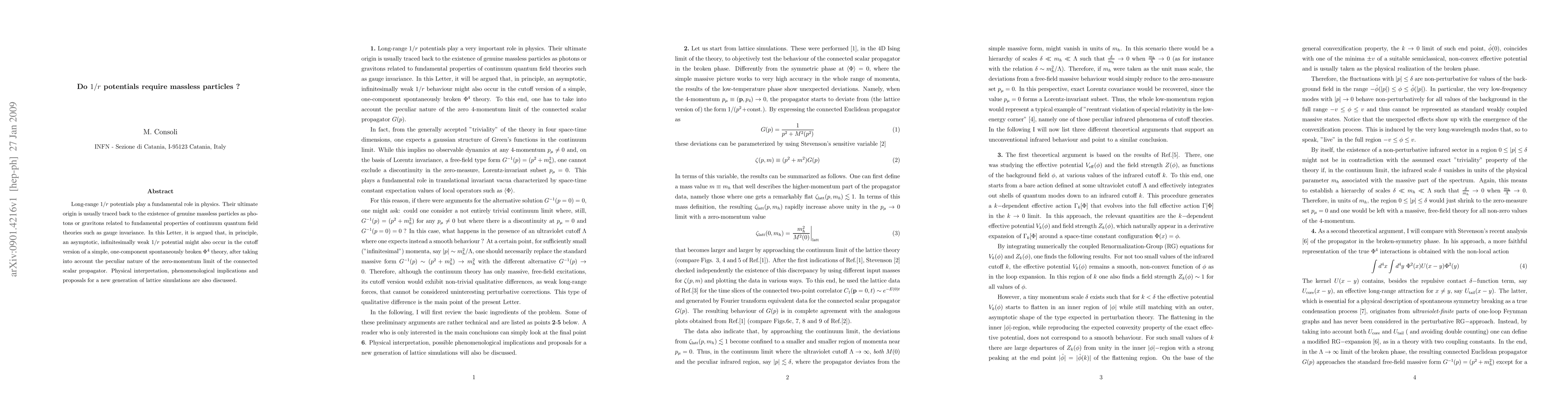 Researchers propose that an asymptotic 1/r potential could occur in a simplified quantum field theory model, challenging the conventional link to massless particles like photons or gravitons.