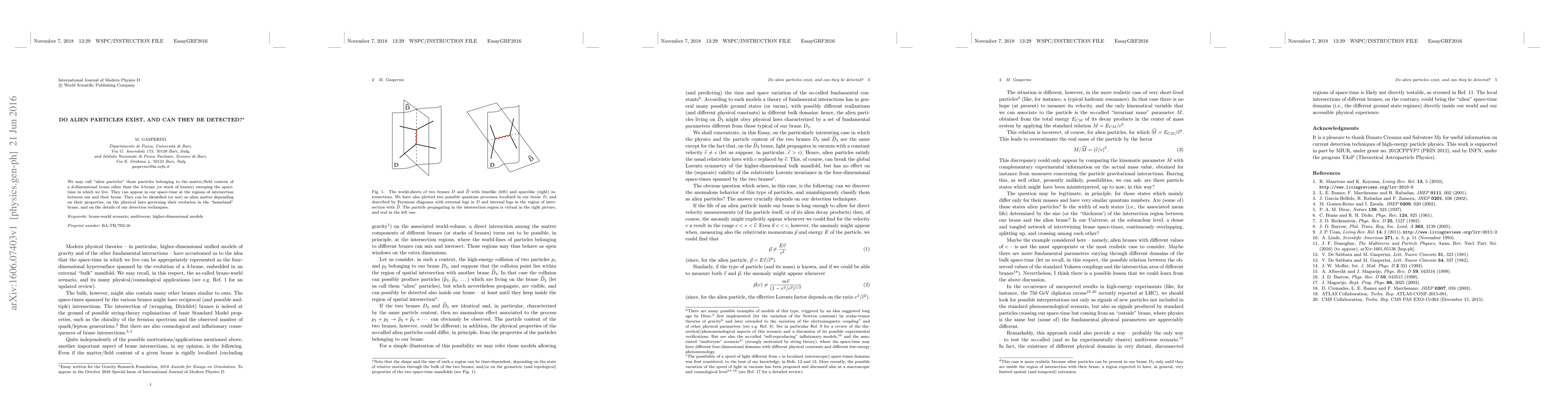 This paper explores the possibility of detecting "alien particles" from other $d$-dimensional branes intersecting with our $3$-brane. It examines how these particles could be identified based on their properties, the physical laws of their origin, and the effectiveness of our detection methods.